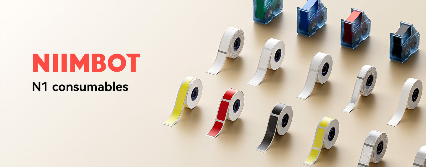 NIIMBOT N1 ラベルプリンター 名前シール 専用 ラベル カーボンリボン カートリッジ リボン ブラック ホワイト レッド ブルー グリーン ピンク 動物